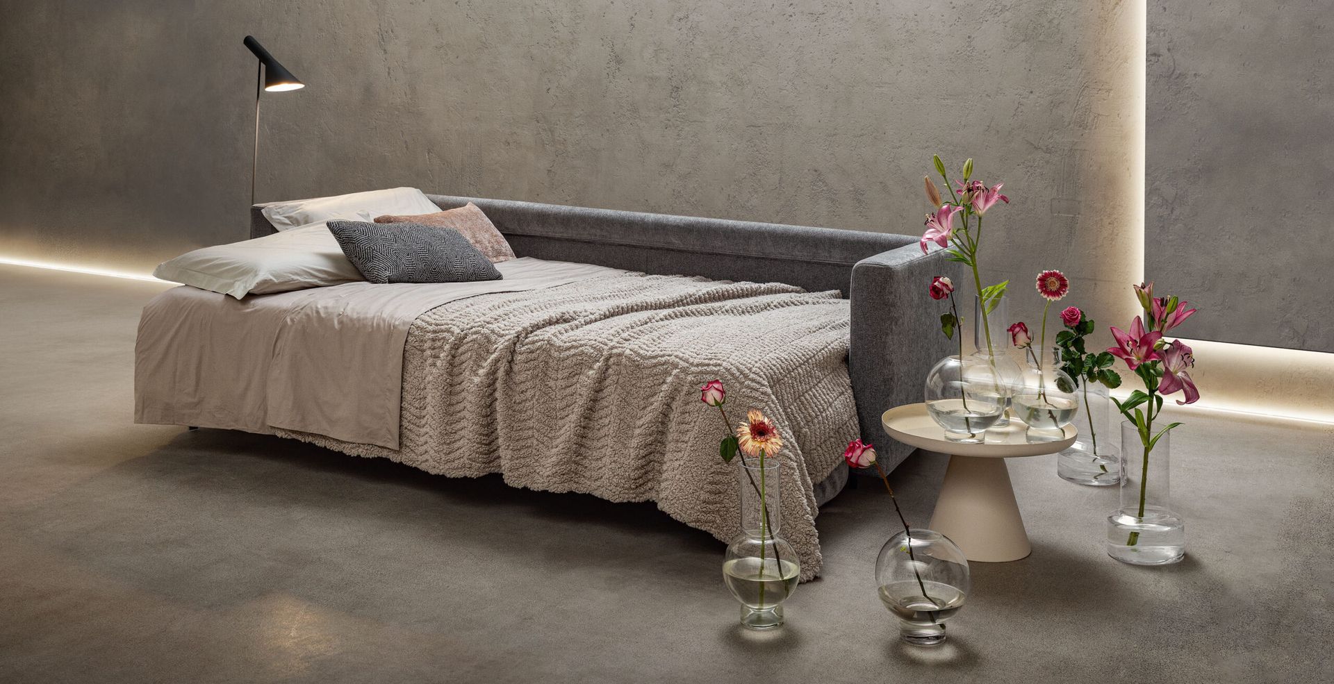 Creiamo soluzioni intelligenti che si adattano al tuo stile di vita. I nostri divani letto combinano eleganza, funzionalità e comfort, offrendo un'ampia scelta: dai classici con materasso integrato ai trasformabili modulari, perfetti per ogni esigenza di ospitalità discreta